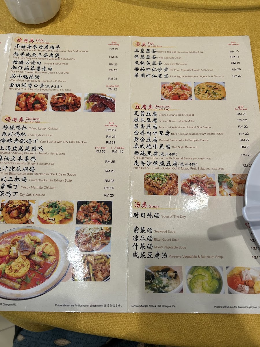 The menu at Restoran CH Sdn. Bhd. offers a traditional Chinese dining experience centered around comforting, well-prepared dishes that are perfect for family meals or gatherings with friends. The selection leans toward hearty entrees and familiar flavors that pair well with a casual, inviting atmosphere.
